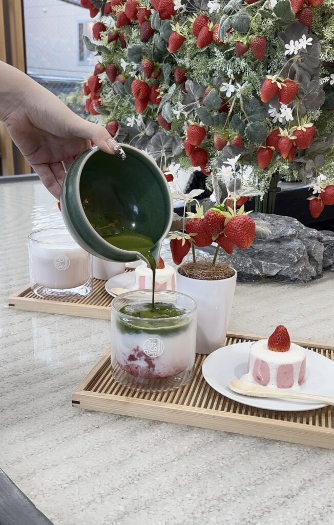 gentle bitterness of matcha with the soft sweetness of strawberry.