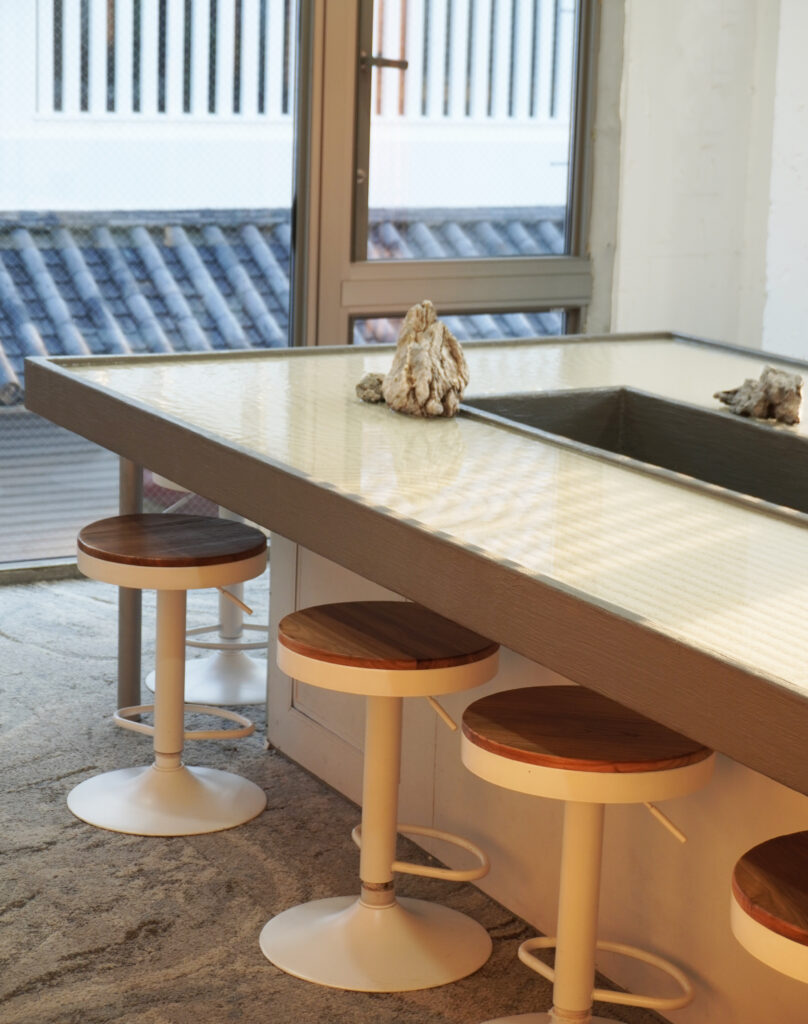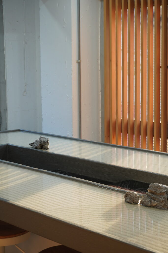 「濡山水(ぬれさんすい)」の水テーブルが生み出す落ち着いた空間は、